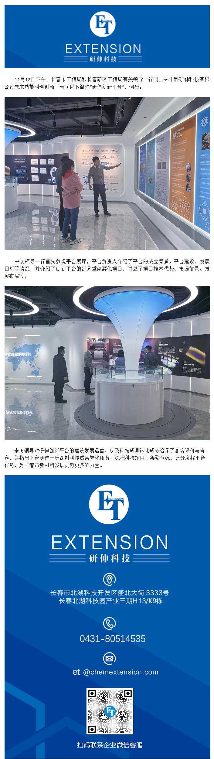 長春市工信局有關(guān)領(lǐng)導(dǎo)一行調(diào)研中科研伸未來功能材料創(chuàng)新平臺(tái)