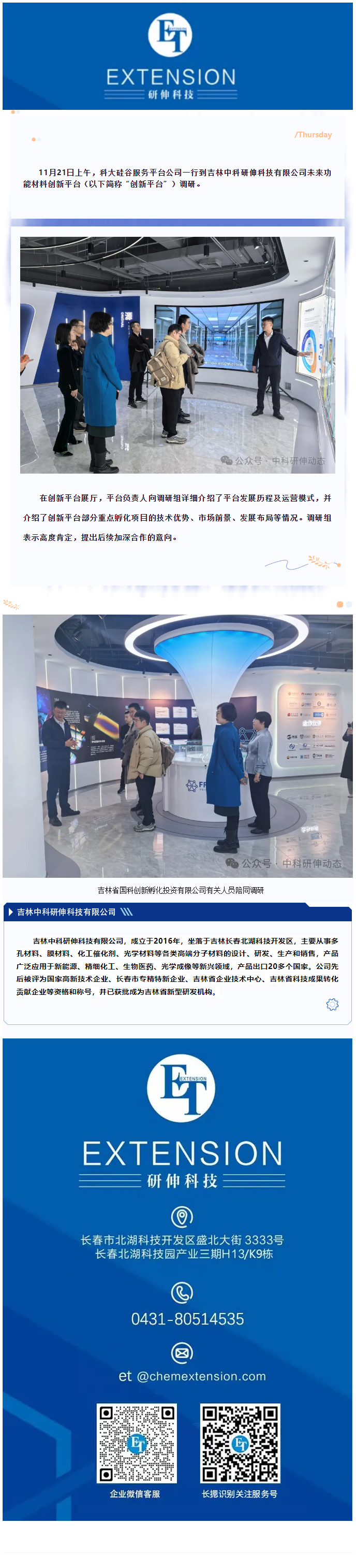 科大硅谷服務(wù)平臺(tái)公司一行調(diào)研中科研伸未來(lái)功能材料創(chuàng)新平臺(tái)